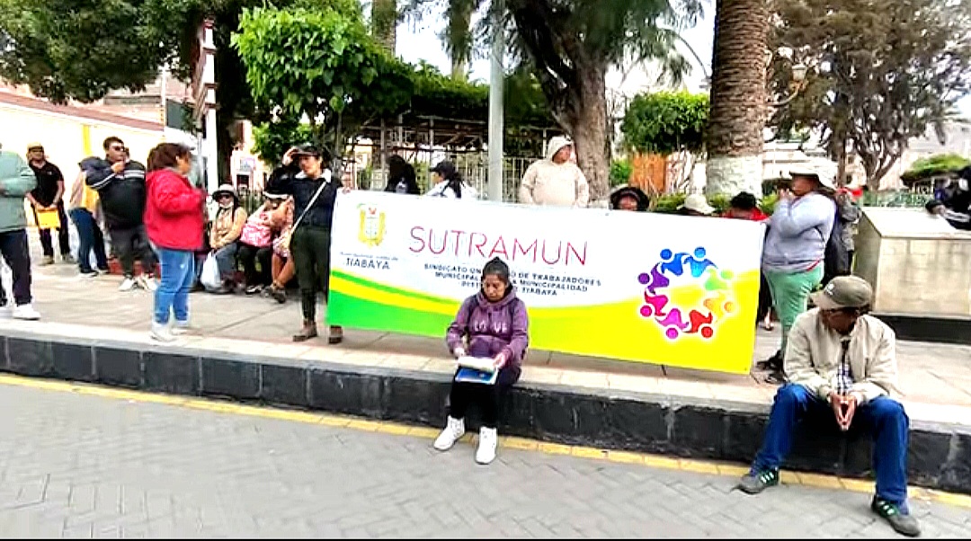 150 trabajadores de la Municipalidad de Tiabaya realizaron una protesta por falta de pagos.