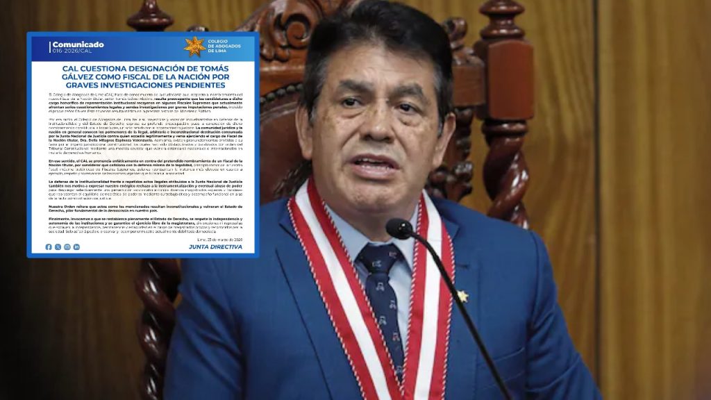 Colegio de Abogados de Lima rechaza designación de Tomás Gálvez como fiscal de la Nación