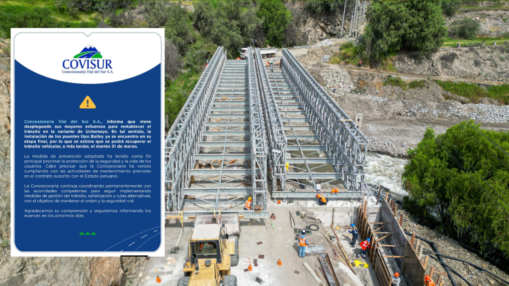Tránsito en la variante de Uchumayo se restablecerá a más tardar el 31 de marzo