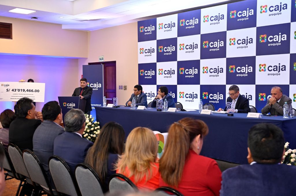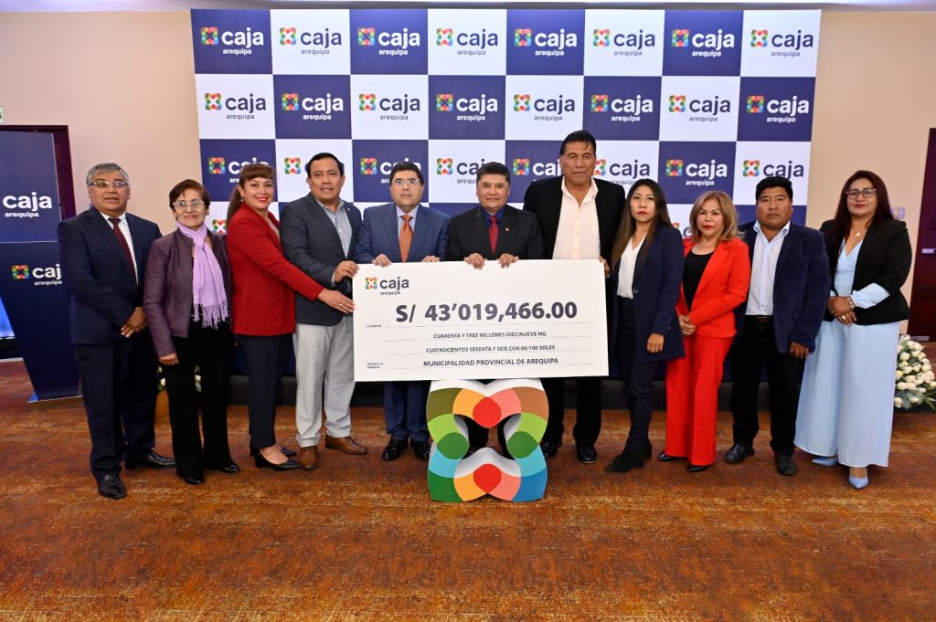 Arequipa. En línea con su compromiso con el desarrollo económico y social de la ciudad, el martes 17 de junio, Caja Arequipa entregó un cheque por S/ 43’019,466.00 a la Municipalidad Provincial de Arequipa, correspondiente a las utilidades generadas durante el ejercicio fiscal 2024. Este aporte anual tiene como destino la ejecución de obras de impacto social.