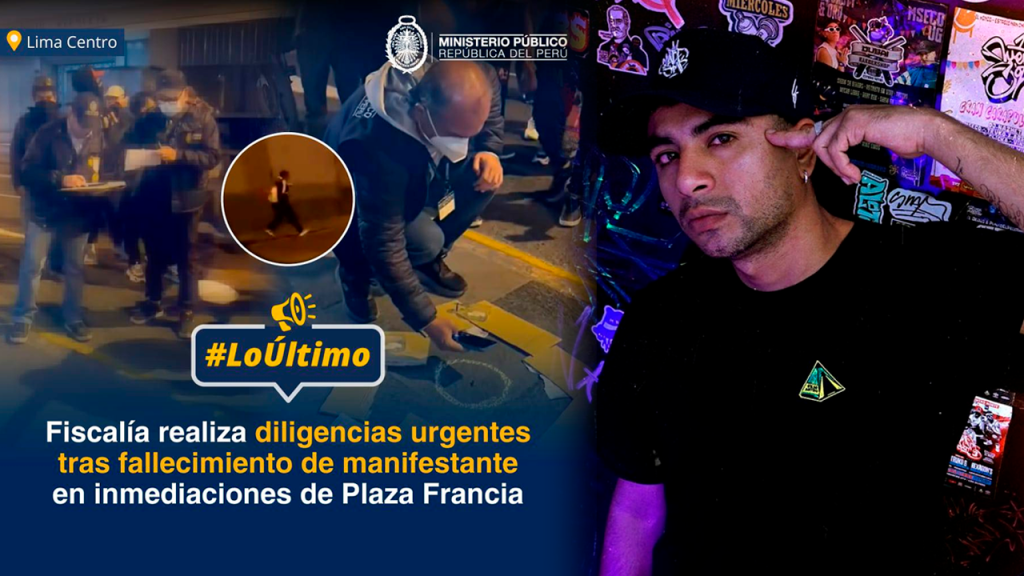 El Ministerio Público informó que viene realizando diligencias urgentes para esclarecer las circunstancias del fallecimiento de Eduardo Ruiz Sanz, de 32 años, quien recibió un disparo por arma de fuego en las inmediaciones de la Plaza Francia, en el Cercado de Lima, durante las protestas antigubernamentales del último miércoles 15 de octubre.
