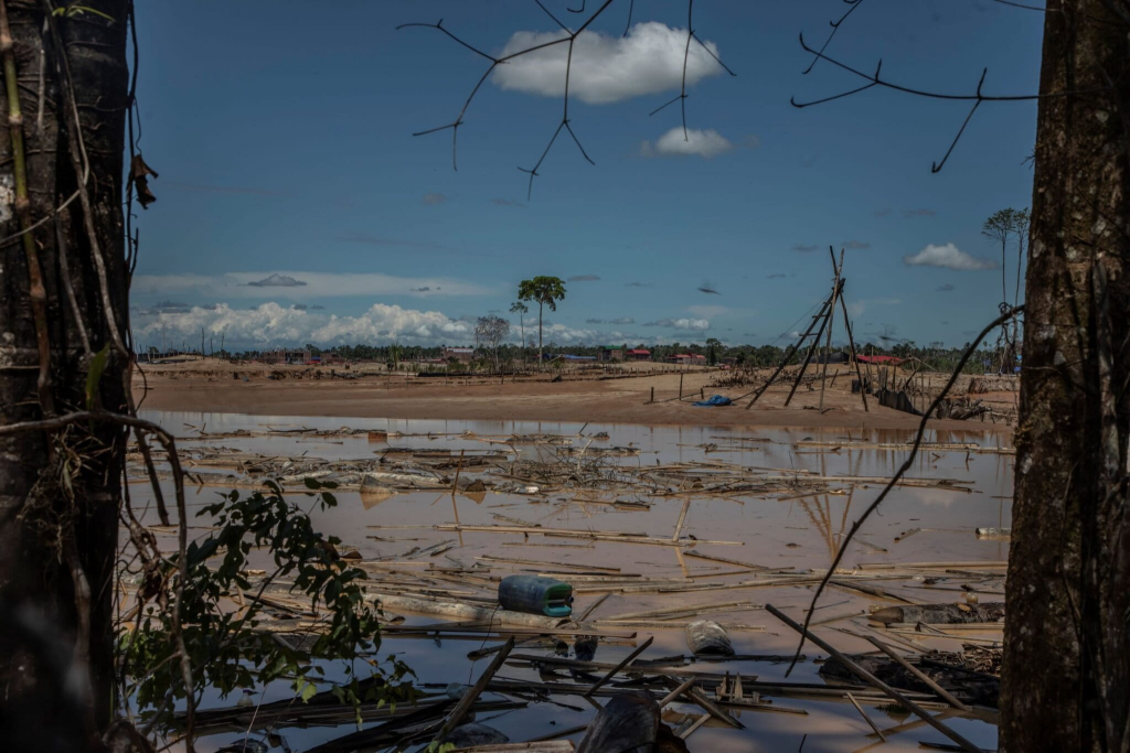 Un equipo de reporteros de Mongabay Latam y Forbidden Stories recorrió La Pampa y algunas zonas cercanas a este territorio tomado por las actividades ilícitas y la violencia. Encontró devastación, visible a cada paso; un ambiente rodeado de secretismo; miradas de sospecha y desconfianza; y mucho temor a hablar de lo que sucede en este lugar. Los nombres de quienes nos han dado sus testimonios los mantenemos en reserva por cuestiones de seguridad.