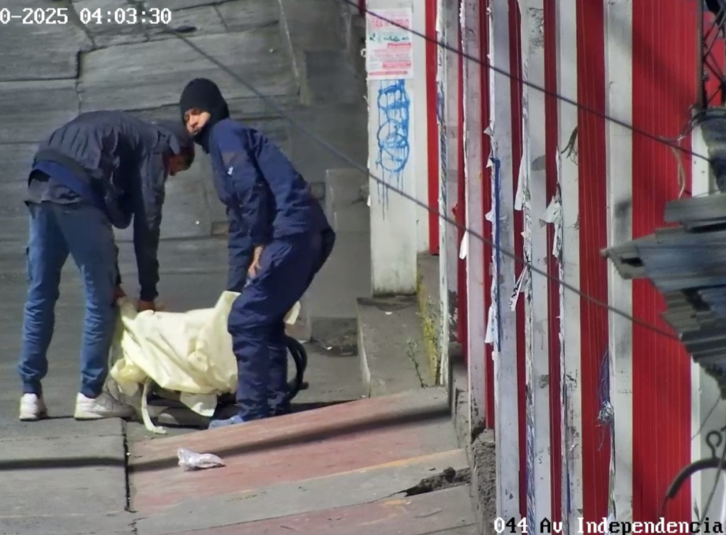 Las cámaras de seguridad de la Municipalidad Provincial de Arequipa captaron a los sujetos que, en actitud sospechaban, transitaban por la Av. Independencia. Ellos tenían en su posesión una maquina vibradora.