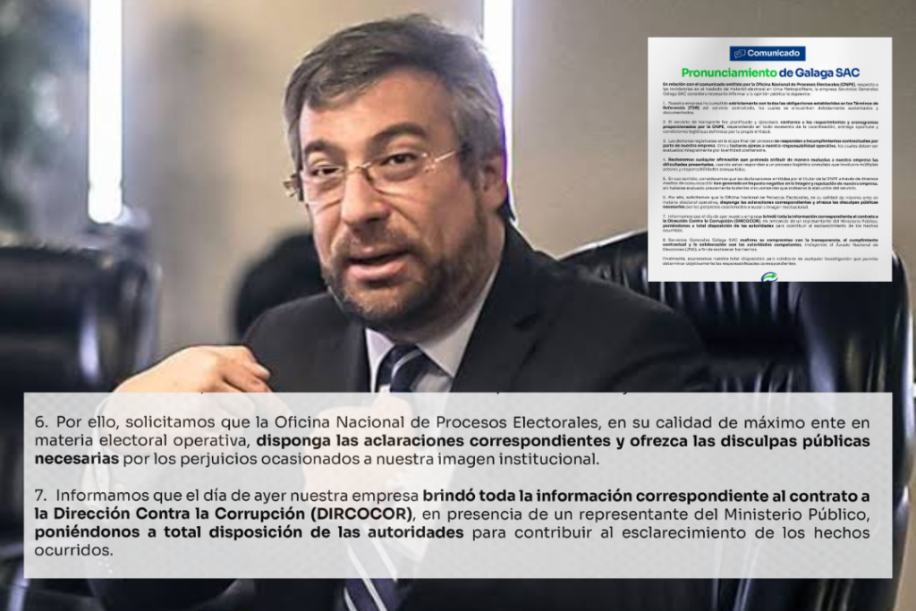 Ante lo que consideran un daño a su imagen institucional, han solicitado formalmente que la entidad electoral ofrezca disculpas públicas y rectifique sus señalamientos. Finalmente, Galaga SAC manifestó su disposición para colaborar con el Jurado Nacional de Elecciones (JNE) y otras autoridades competentes con el fin de esclarecer las causas reales del incidente logístico que afectó la jornada democrática.