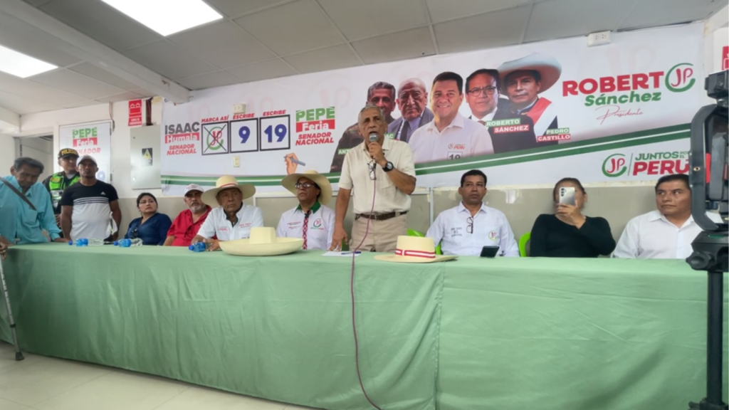 El candidato presidencial de Juntos por el Perú, Roberto Sánchez Palomino, acompañado de Antauro Humala, prometió impulsar una nueva Constitución Política durante una actividad proselitista realizada en Piura, donde apareció portando el sombrero chotano que usaba el expresidente Pedro Castillo.