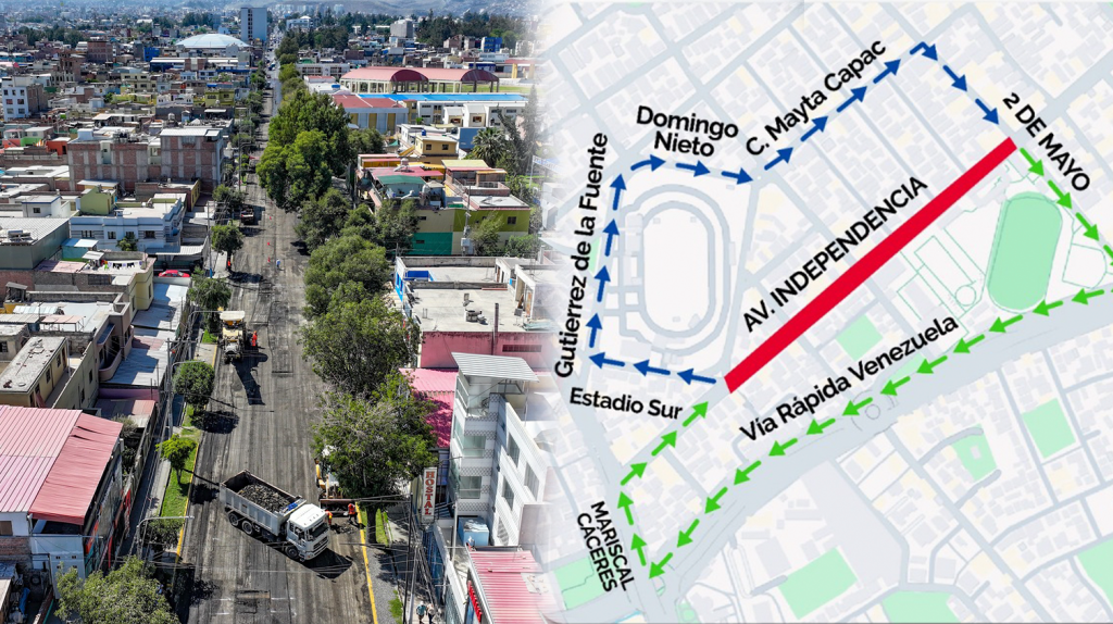 La Municipalidad Provincial de Arequipa anunció que, desde este lunes 19 de mayo, a partir de las 9:00 a.m., se cerrará temporalmente el tramo de la avenida Independencia entre la Av. Recavarren y la calle 2 de Mayo para ejecutar trabajos de mantenimiento vial. Ante ello, se ha dispuesto un plan de desvíos para garantizar la fluidez del tránsito durante los tres días que durarán las obras.