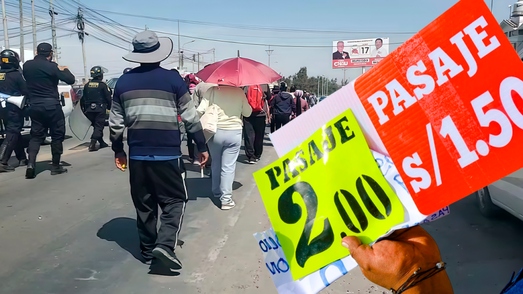 Gremios del transporte público realizaron una movilización en el cono norte de Arequipa para exigir que se autorice el cobro de S/ 1.50 por pasaje, argumentando que el incremento responde al alza del precio de los combustibles y al desabastecimiento del suministro.