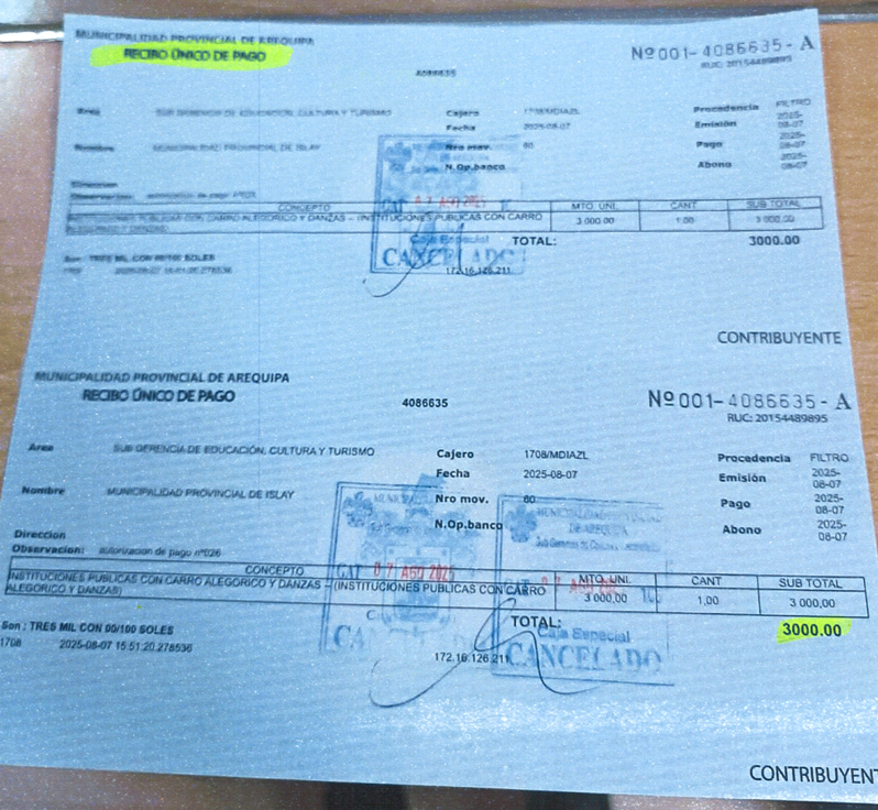 Más allá de esta percepción, el principal problema radicaría en que la delegación se habría inscrito a nombre de la Municipalidad Provincial de Islay. El dirigente sostuvo que habrían conversado con el alcalde Richard Ale y tendrían su aval.