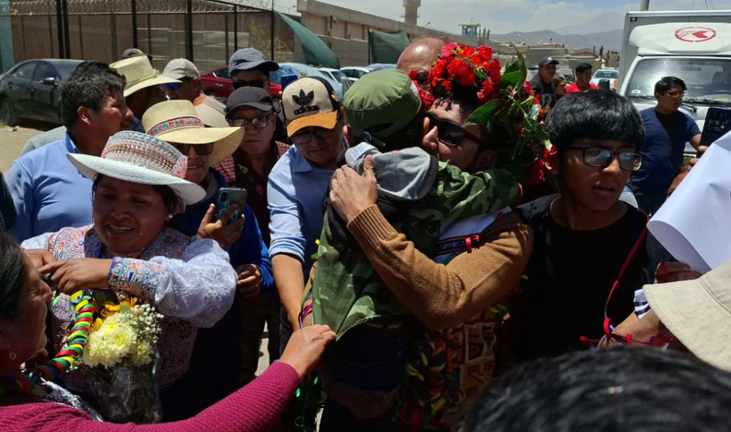 Cáceres Llica, quien vestía ropa y zapatos confeccionados en el penal por los reclusos y un libro del El Conde de Montecristo, fue recibido por un grupo de simpatizantes y afirmó que enrumbará a Caylloma, su provincia natal, para estar junto a su familia.