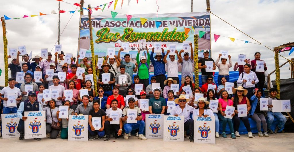 La Municipalidad Provincial de Arequipa entregó 60 títulos de propiedad a los integrantes de la Asociación de Vivienda Las Esmeraldas – El Triunfo, en el distrito de La Joya. Los beneficiarios completaron su proceso de formalización tras gestionar primero el saneamiento físico legal en el 2024.