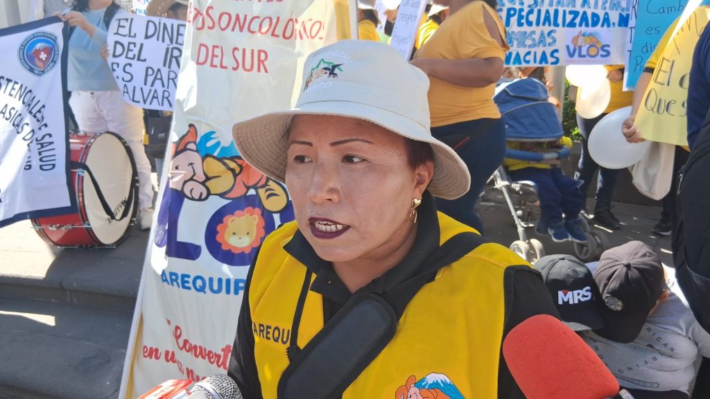 Los padres de los “valientes leoncitos”, como llaman a los niños con cáncer atendidos en el Instituto Regional de Enfermedades Neoplásicas del Sur (IREN Sur), junto al personal médico y asistencial del establecimiento, se movilizaron este jueves por las calles de Arequipa para rechazar el intento del Gobierno Regional de trasladar la sede del nuevo hospital oncológico a la autopista Arequipa, La Joya.