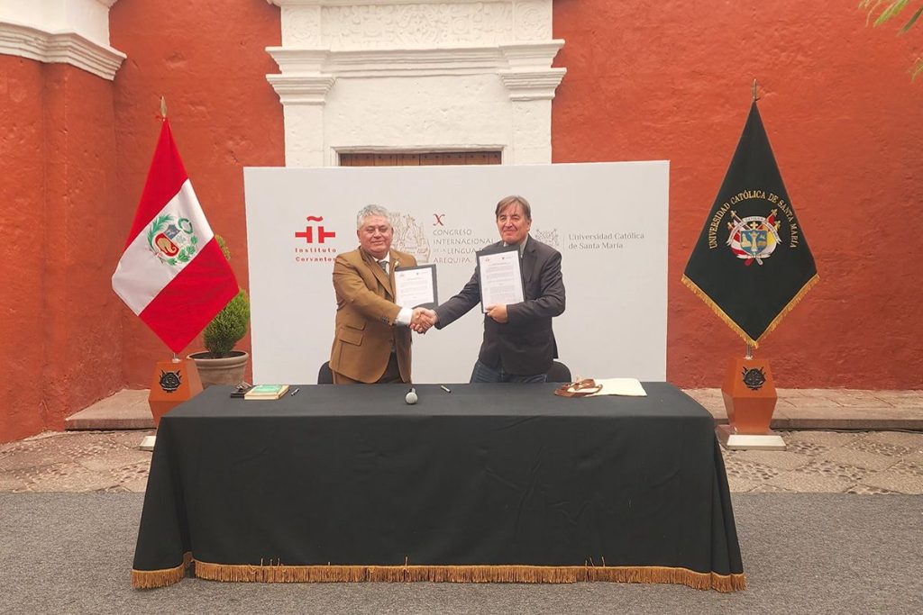 En un acto institucional celebrado en la Casa de la Cultura de la Universidad Católica de Santa María, se suscribió un convenio de colaboración entre la UCSM y el Instituto Cervantes, con el propósito de consolidar una línea académica dedicada a la enseñanza del español para extranjeros en Arequipa, ciudad reconocida por su riqueza cultural y creciente turismo internacional.