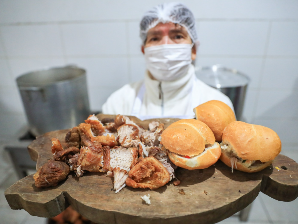 El pan francés, chicharrón de cerdo, camote frito y salsa criolla, se volvió la combinación perfecta y contundente para iniciar la mañana. Siendo el favorito de muchos.