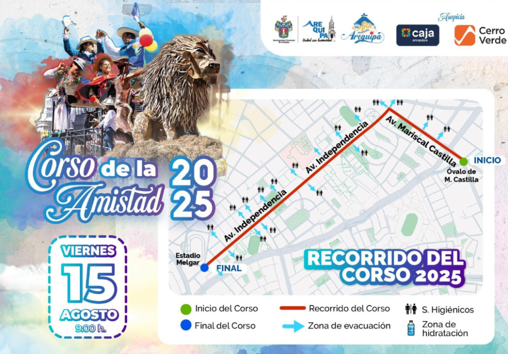 Todo va quedando listo para el Corso de la Amistad que se celebra en el día central del 485°Aniversario de Arequipa, el viernes 15 de agosto. Las autoridades se reunieron este martes para definir las medidas de seguridad para este pasacalle y la serenata.